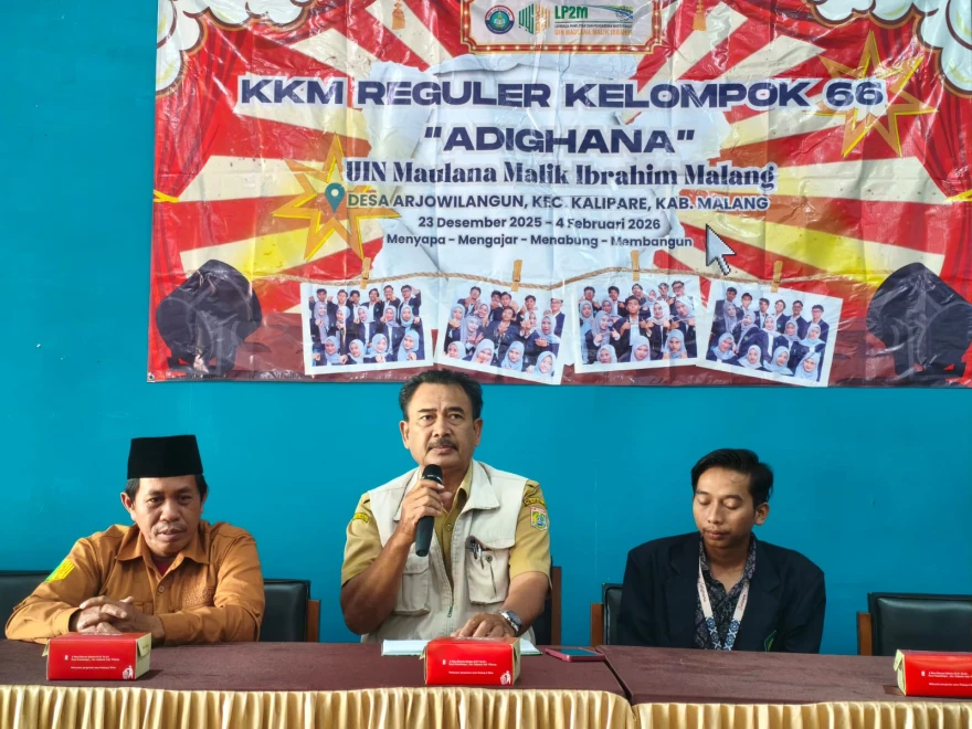 Ketua KKM UIN Malang Kelompok 66, Darvesh Fajriansyah, dalam sambutannya menyampaikan terima kasih kepada Pemerintah Desa dan masyarakat Desa Arjowilangun atas penerimaan dan dukungan selama pelaksanaan KKM. Ia juga menyampaikan permohonan maaf apabila selama pelaksanaan kegiatan terdapat sikap maupun tutur kata mahasiswa yang kurang berkenan. Menurutnya, pengalaman KKM di Desa Arjowilangun menjadi bagian penting dalam perjalanan akademik dan pembelajaran sosial mahasiswa.